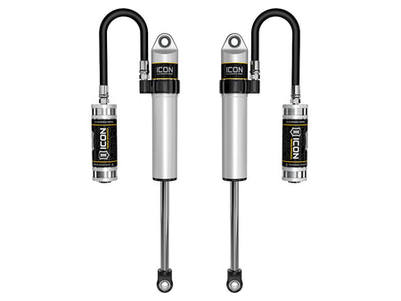 ICON Vehicle Specific (V.S.) 2.5 Aluminum Series shocks are designed and built to give your vehicle outstanding performance off-road and a smooth ride on the street. These shocks are configured specifically for each application in both length and damping tune. Like all ICON'S Shock Absorbers, V.S. 2.5 Aluminum Series shocks are 100% rebuildable and 100% revalveable. For piggyback and specific remote reservoir applications, ICON'S unique use of a 6061 billet aluminum manifold a few inches below the top cap of the shock creates an internal Bump Zone that when used creates an additional 20% of damping force. This additional force helps prevent harsh bottom outs and controls the suspension when compressing at high velocity. If you are looking for a more user defined tune, consider looking into the Compression Damping Control Valve (CDCV) or the Omega Series bypass shocks.